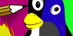 - "Two 7 year-olds, how do you let them compute and keep your hair? I do have two machines, one my Linux workhorse and the XP just to remind me machine on the side. I installed the equalizer of open source software on both - TUX Paint!!!!!!!!, so they both could do the same thing. Tux Paint is a wonder of a paint program. While the turkey was in the oven the kids not only learned the interface, they worked both machines without complaint, without problems. There was no difference in the programs operation or the outcomes. Pretty amazing things the kids were doing, I was impressed. If your computer doesn't have TUX Paint you must be a slacker. It's for kids but I also like to play because it's not so serious. And yet some pictures are quite good. It has brushes, stamps, lines, effects and sounds. Your talented budding artist will be busy, you'll be hunched over their shoulder going "let me try that". If you have a good printer you can put that refrigerator magnet collection to work. The way kids see and do things is really cool." - Arno's Art, December 31, 2008